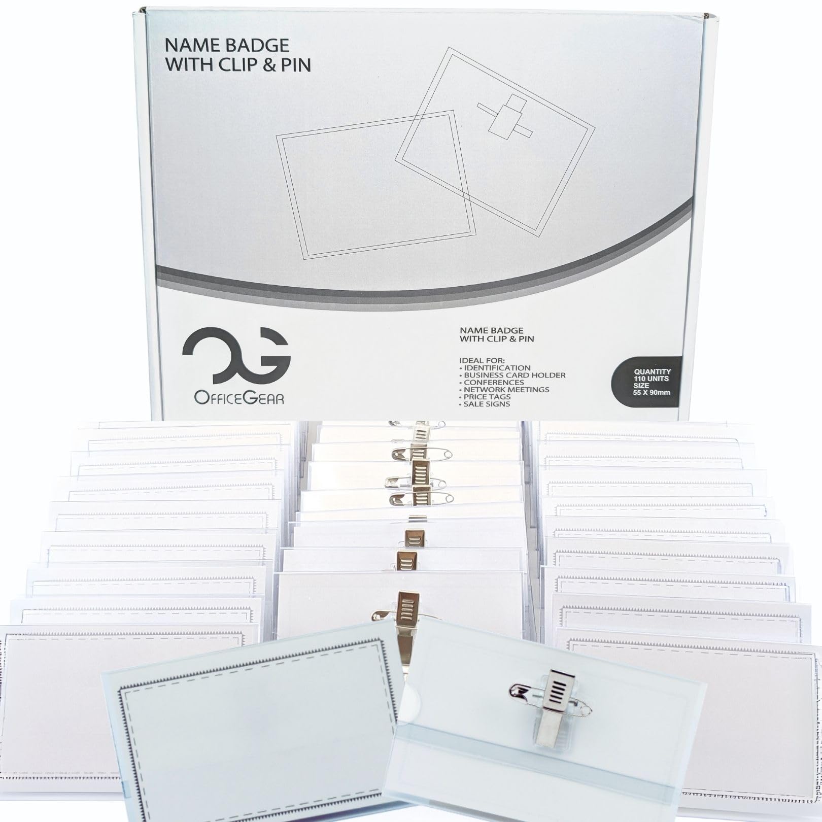 OfficeGear Name Badges: 110 Premium Vinyl Badges with Clip & Pin