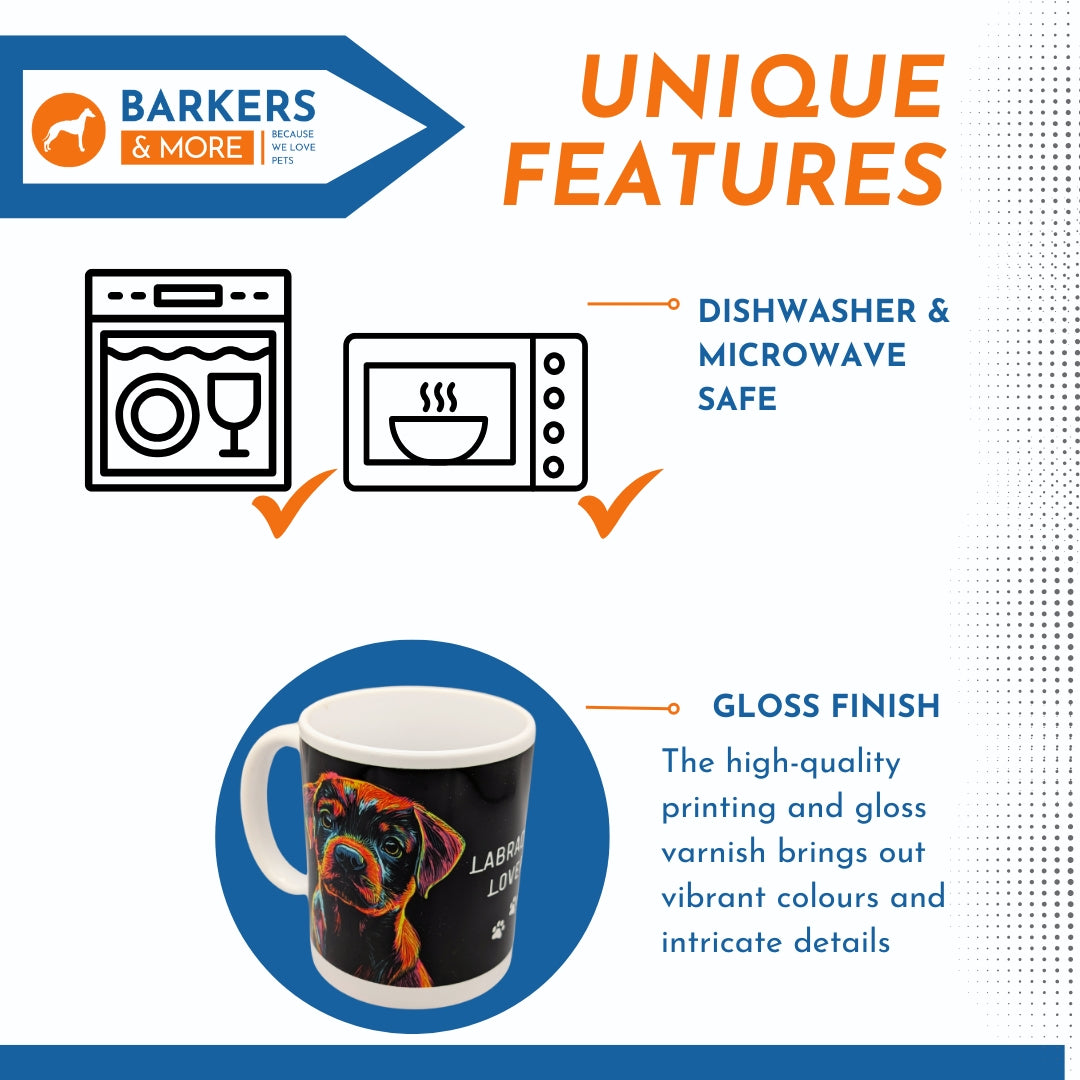 Barkers & More Labrador Lover Mug Neon Outline Unique Design - Gift Idea for Any Tea or Coffee Loving Lab Owner Suitable for Christmas, Birthday Mothers Fathers Day Thank You Gesture